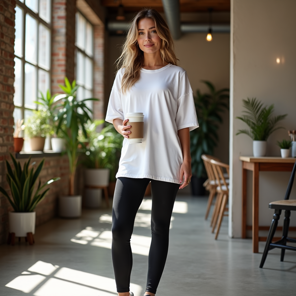 Setze das Oversized Shirt gekonnt in Szene, indem du es mit schmalen Hosen oder Leggings kombinierst – so kommt der weite Schnitt richtig zur Geltung.