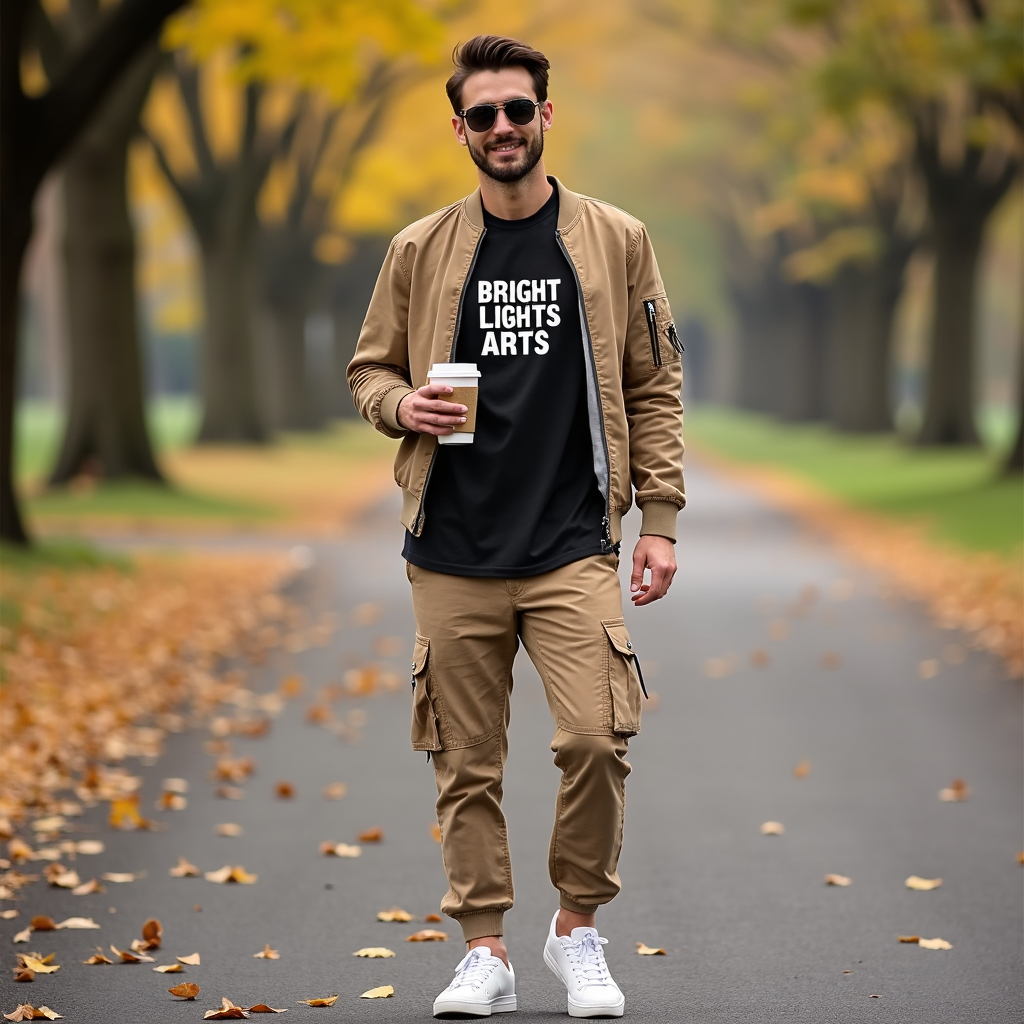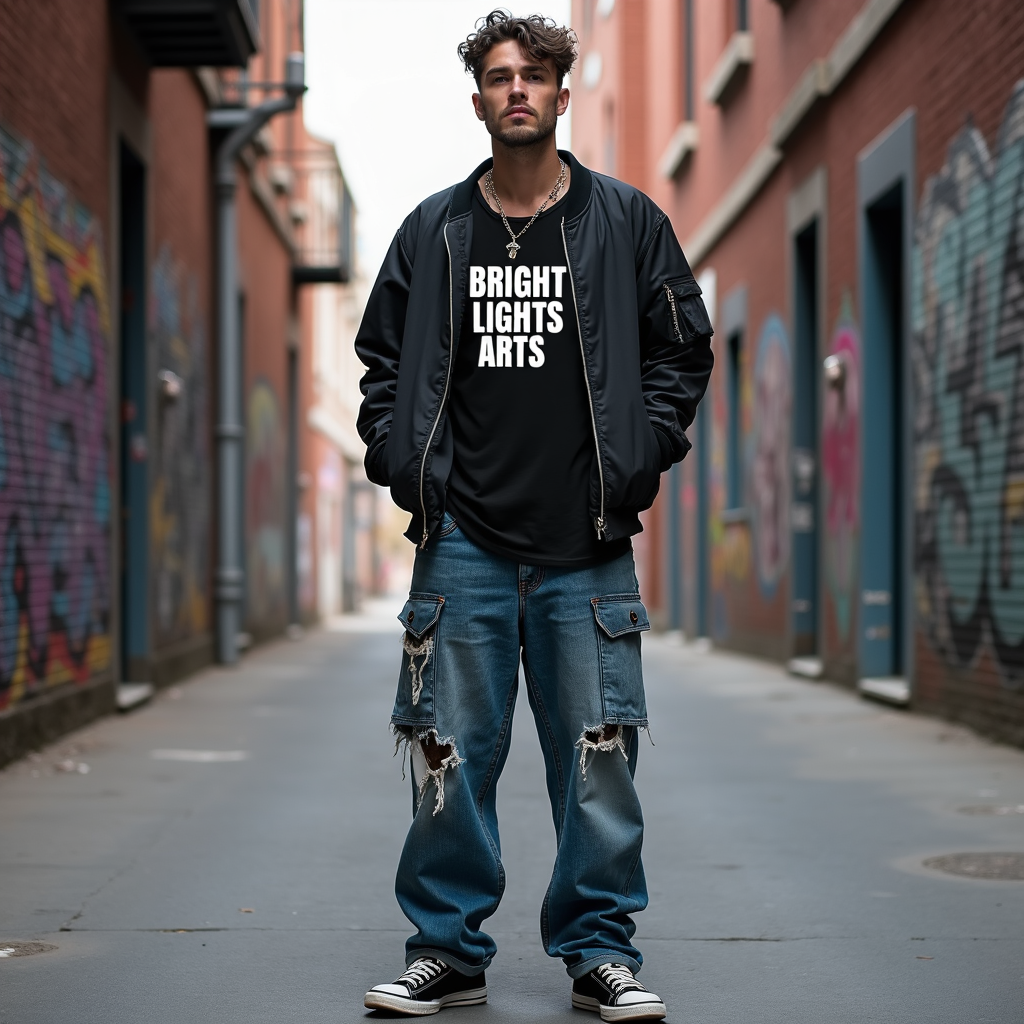 Abends wird es clubtauglich, wenn du es mit einer leichten Bomberjacke und Jeans kombinierst.