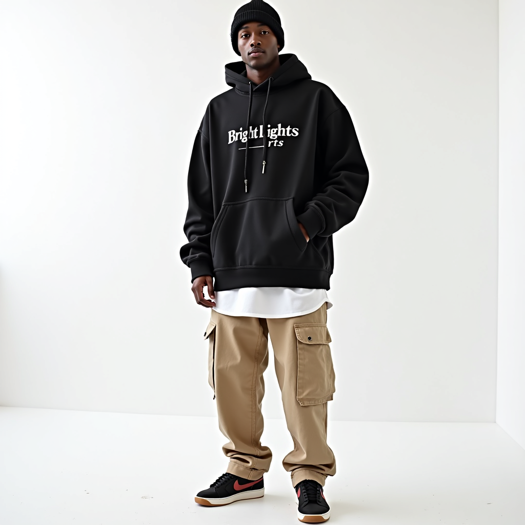 Der Stoff ist extra dick, innen wohlig angeraut und außen robust, was dem Hoodie einen hochwertigen Griff gibt. Schon beim Überziehen merkst du: Das ist kein Leichtgewicht, sondern ein Kuschelpiece mit Street-Credibility.