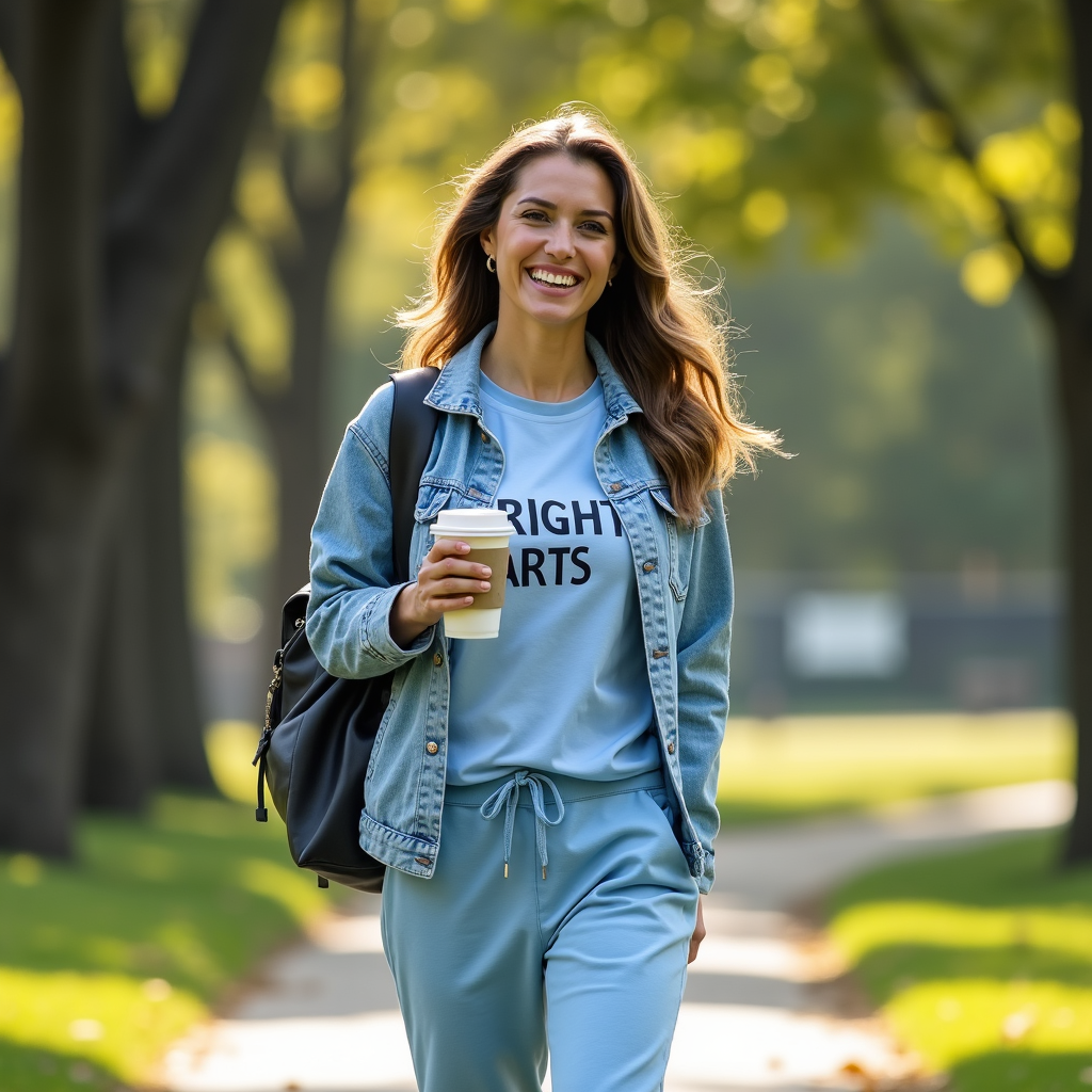 Auch außerhalb des Trainings darf das Shirt raus an die Luft: Zu lockeren Jogger-Pants und einer Jeansjacke entsteht ein trendiger Athleisure-Look, mit dem du bequem durch den Tag kommst (und jederzeit ready für spontane Aktivitäten bist).